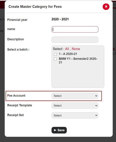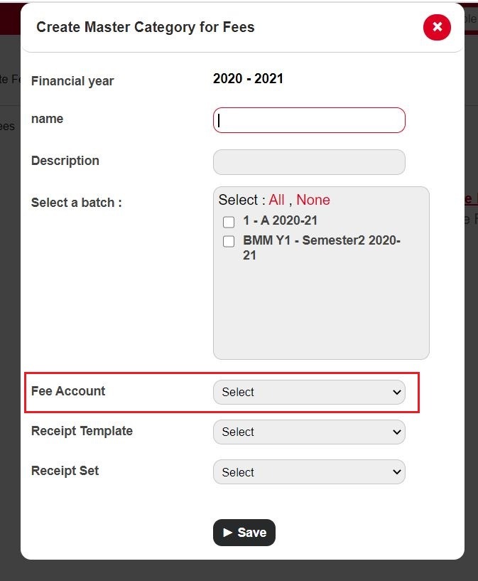 7. While creating the Fee Category assign the appropriate Fee Account.