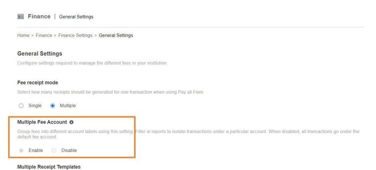 2. Enable Multiple fee Account.