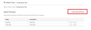 Step 1: Go to Menu > Administration > Finance > Fee > Master Fees