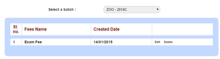 Select a batch. The list of fee categories created for the batch will be displayed as depicted below.