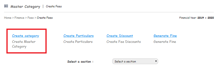 To create “Fee Category”, the user needs to follow the below steps: