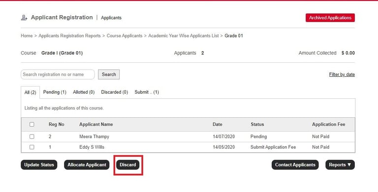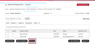How to discard a registered applicant?