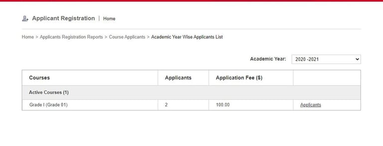 Click Applicants beside a course.