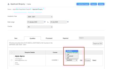 Once these stages are added you will get an option to move the enquiry applications to the various stages within Qualified.