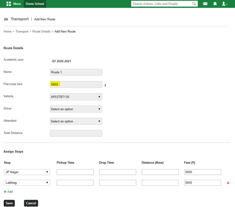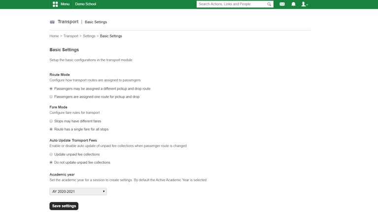 Here you can decide how the transport routes are assigned to passengers. There are two option available. You can select any of it according to the institutional requirement.