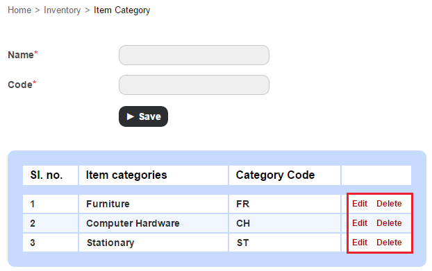 An item category can be edited at any time. An item category can be deleted only if it has not been used when adding an item to a store.