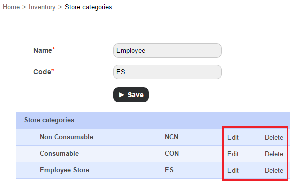 A store category can be edited at any time. A store category can be deleted only if it has not been used when creating a store.