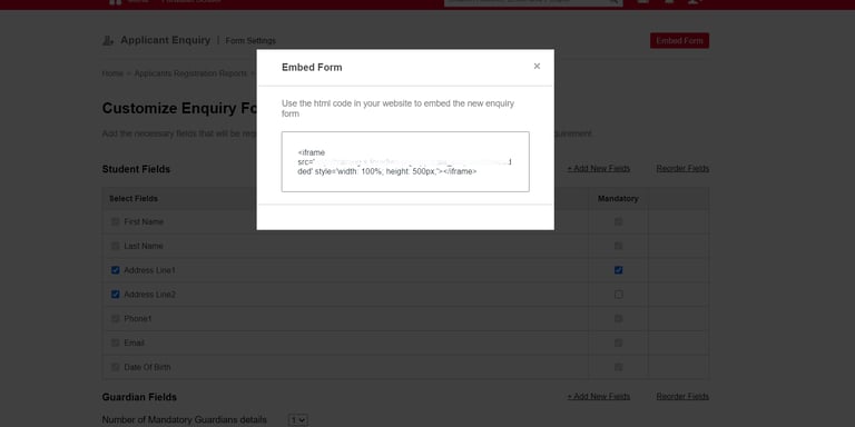 Enquiry form in Fedena can also be embedded in your school website easily to reach more audiences.
