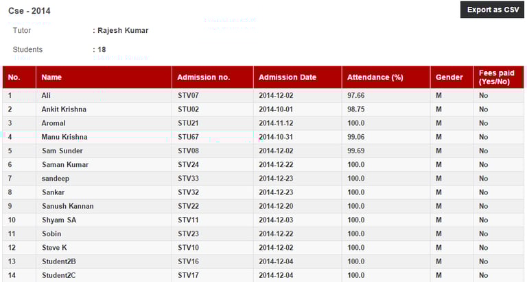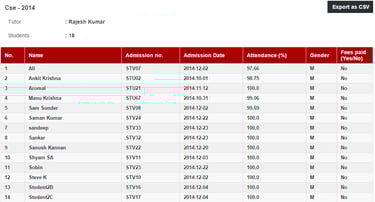 Click on a batch to view the students in the batch and student details.