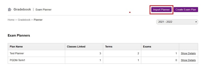 3. Select the exam planner that needs to be imported.