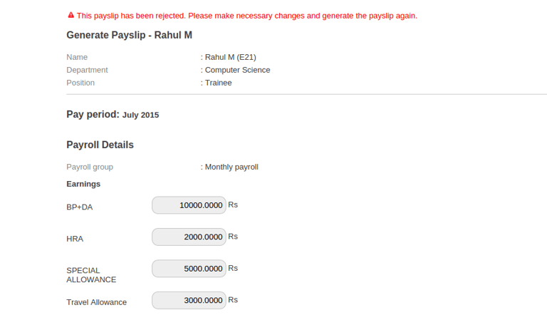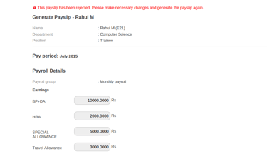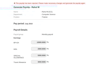 How to re-generate rejected employee payslip ?