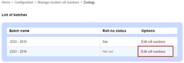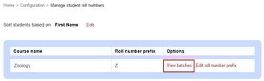If you’ve set the roll number prefix for a course as mentioned here, the prefix set for the course will be automatically applied to all batches under that course. If you do not want all batches of a course to have the same roll number prefix, you can change it for each batch. We recommend setting unique roll number prefixes for each batch. This will help you to identify which batch a student belongs to. The roll number prefix can contain a maximum of six alphanumeric characters.