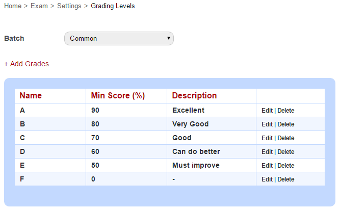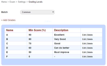 By default the grading levels are set to be common for all the batches in Sharakshara.