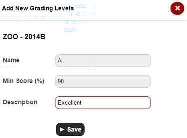 In the Min Score (%) field, enter the minimum percentage score required for this grading level.