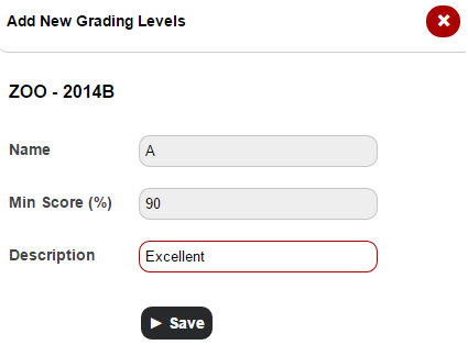 Note : To edit a grading level, click Edit and to delete a grading level, click Delete