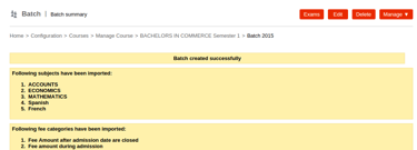 Fig 2 shows the imported subjects as well as the master fees of the previous batch successfully imported.