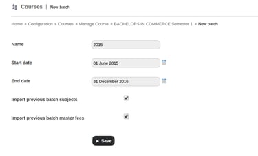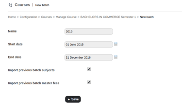 es, It is possible to import previous batch subjects and master fees . When creating a new batch there is a check box option to import previous batch subjects and master fees as shown in fig 1.