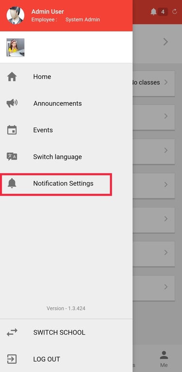 Tap on the Notification Settings option, this will provide the configurations available for each user