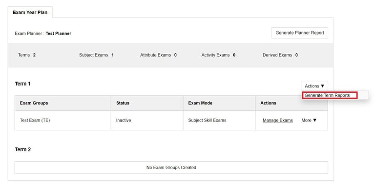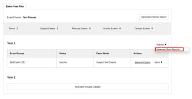 Term Report - Report for a particular term. Create term exam before you generate the term report.