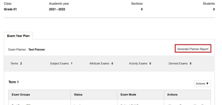 Planner Report - For the entire academic year. Planner exam should be created before generating planner report.