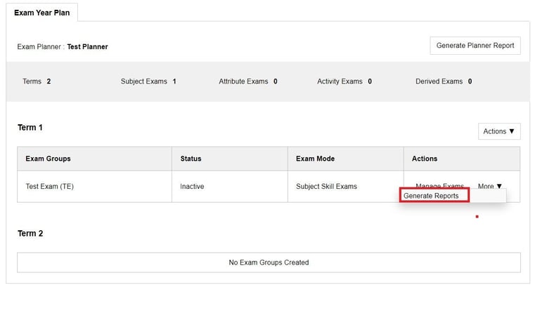 Once the required exams are added and marks are entered for a term we can generate the report for the exam/term/ academic year.