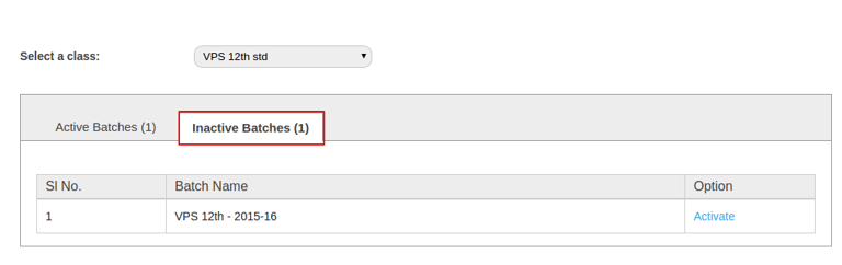 If all the students are transferred to the new batch then the previous batch will automatically become deactivated or inactive and the batch will not be reflected under the list of active batches. The batch will remain as active, even if one student is present in the batch.