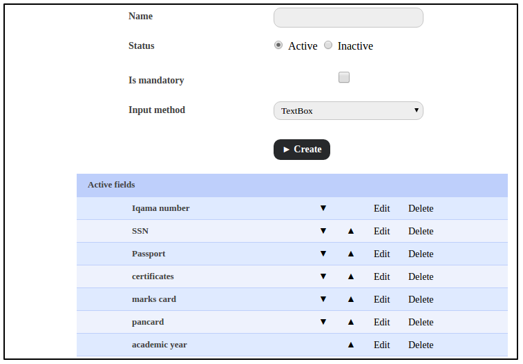 Active – A custom detail field with this status will be available in the student admission form and can be used to record additional details about the applicant.