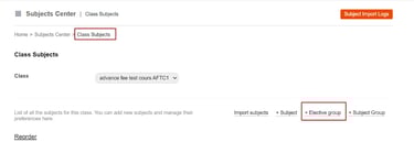 1. First, in the Subject Center" click "Class Subjects" >> select the "Class" >> "Elective Group".