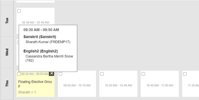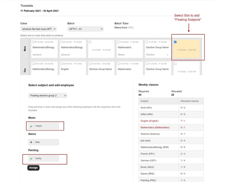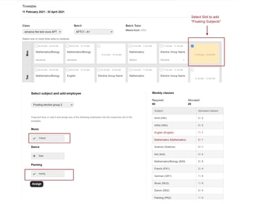 5. Select the empty “time slot”, assign subjects from the “Floating Electives Group” field.