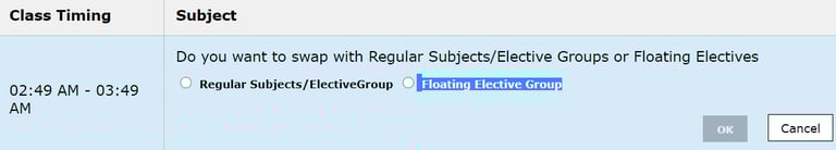 3. We can swap subject with Regular Subjects/ElectiveGroup or Floating Elective Group and Subjects