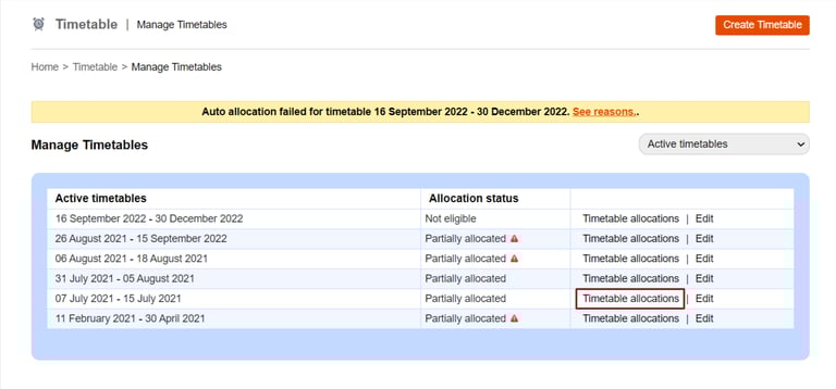 4. Next to assign Floating Electives in Timetable>> go to “Manage Timetable” select “Timetable Allocations” for Active Timetable.