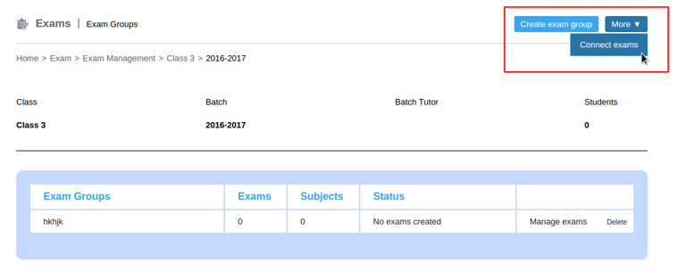 A student’s final overall percentage in an examination is calculated by taking the average of marks scored in each subject. Institutions can use the ‘connect exams’ feature and assign weight-ages to examinations that need to be considered to calculate the final overall percentage for students.