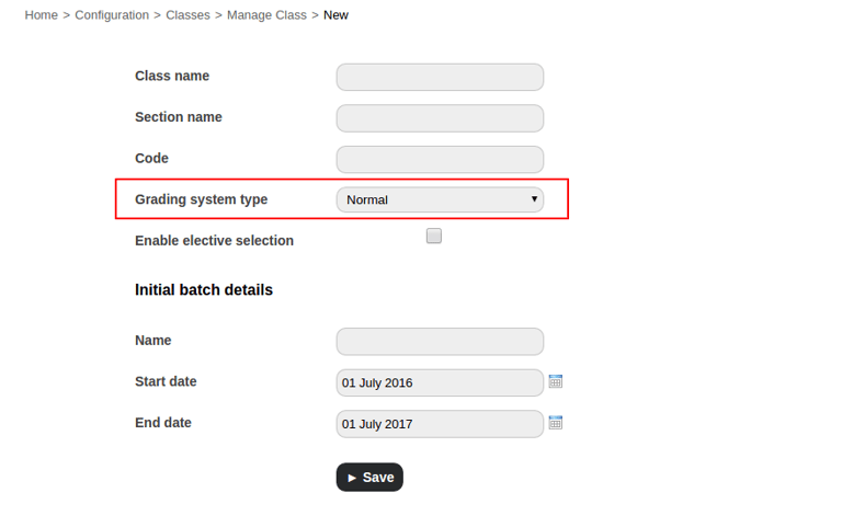 Institutions that do not follow a specific grading system can use the default ‘Normal’ grading system.