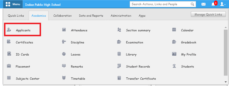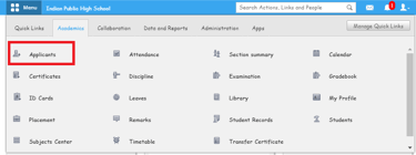 Step 1 : Go to Menu > Academic > Applicants