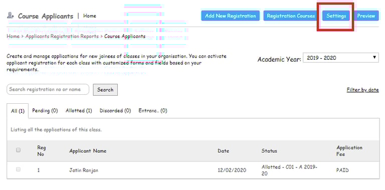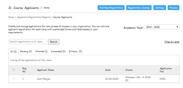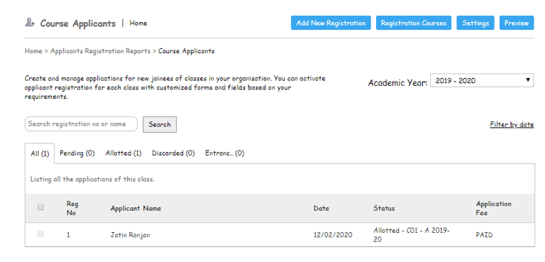 The Admin or the privileged user can manage the Admission process of the new Academic Year Admission using the Registration Module.