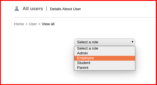 It helps the admin or privileged employees (Manage Users privilege is required) to search for a user based on their roles. At the top of your dashboard, click the module access icon > Administration > User to open the Manage Users page.