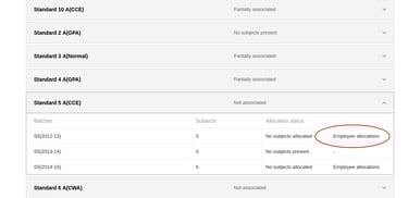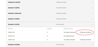 It will list all the batches present in the institution and then select the required batch to list down the subject allocation status as shown in the fig below and click on the Employee Allocation
